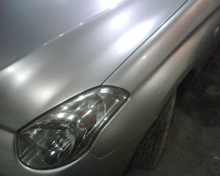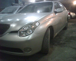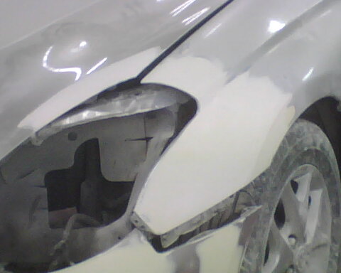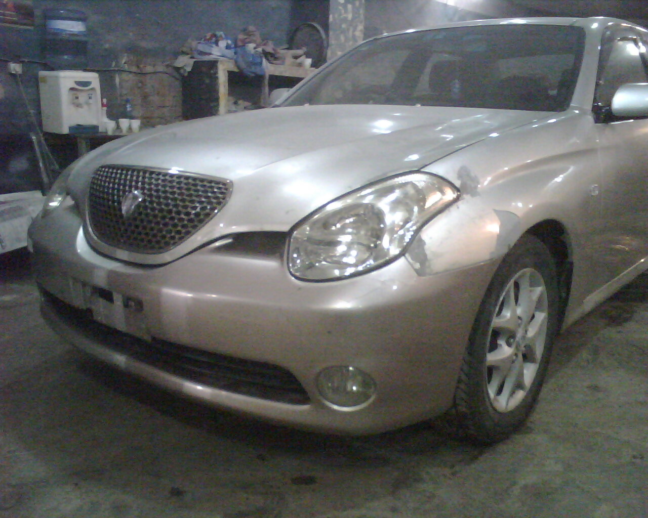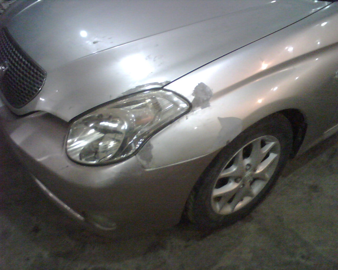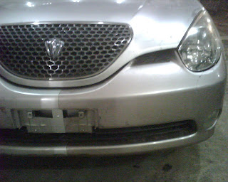 Дээр хэлсэнчлэн урд бампер нь сэргээн засах боломжгүй болсон байсан тул өөр нэгэн бамперын тасархайг олоод хуучин бампертай нь тааруулж наасан нь энэ.